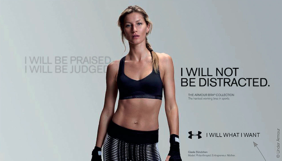 Avec une devise telle que « I Will What I Want», Under Armour a opté pour un positionnement stratégique auprès de tous les sportifs acharnés. Les femmes font donc partie du cœur de cible de la marque qui, en enrôlant le mannequin Gisèle Bündchen sous ses couleurs, a fait d’une pierre deux coups : un gros coup marketing grâce à la notoriété du mannequin d’une part, un message d’encouragement à toutes les sportives non professionnelles d’autre part. Rêvant de doubler Nike, la marque originaire de Baltimore fait des femmes une priorité. Mais à la différence de la marque au swoosh qui tente de les rassembler au sein d’une communauté, Under Armour mise sur leur délité et ciblant les adolescentes. Fin 2016, la marque créée par Kevin Plank a conclu un partenariat avec l’association « She plays We Win » (« Elle joue nous gagnons ») destiné à promouvoir la confiance en soi chez les jeunes filles. Pour l’occasion, une collection de vêtements limitée a été lancée. Elle contient les inscriptions suivantes: « Reine du terrain » ou encore « Ne jamais abandonner ».