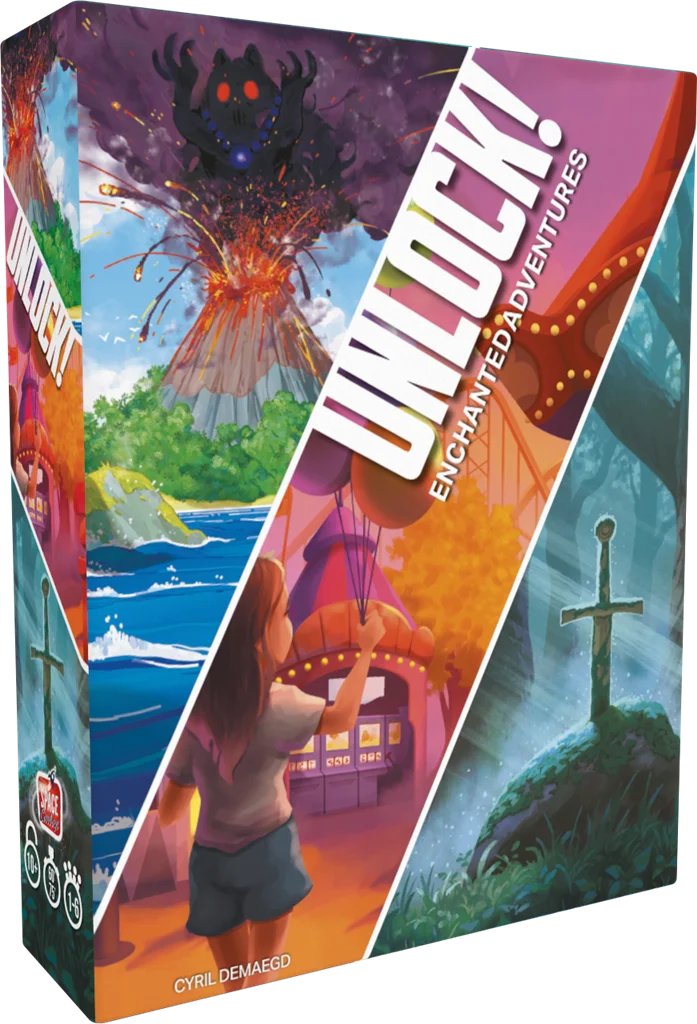 Quatorzième boîte de la célèbre saga d’escape games sur table, Unlock! Enchanted Adventures prouve que l’aventure n’est pas près de s’essouffler. Avec trois scénarios inspirés de mythes et d’univers enchanteurs, cette nouvelle boîte invite les joueurs à voyager entre île volcanique, fête foraine et légende arthurienne. Entre innovations ludiques, énigmes inventives et immersion réussie, l’expérience reste fidèle à ce qui fait le succès de la série : transformer un salon en véritable terrain d’aventure.