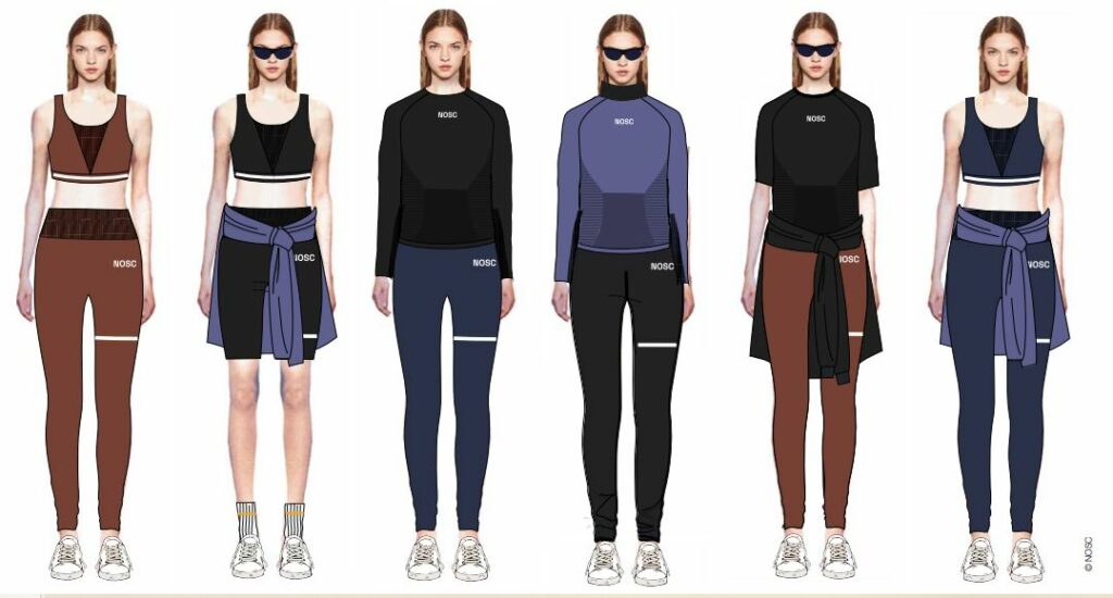 Floriane travaille depuis plusieurs années aux côtés de Nosc. Cette jeune start-up de l'écosystème lyonnais, créée en 2018, conçoit des vêtements techniques innovants et biosourcés. En plus du polyester recyclé, du nylon recyclé et du tencel (fibre de bois), la marque, pionnière, travaille la graine de ricin, matière végétale transformée en huile. Brassières de sport, baselayers, leggings, chaussettes de sport, casquettes, shorts et T-shirts de sport spécialement conçus pour offrir des performances techniques, tout en respectant la planète.