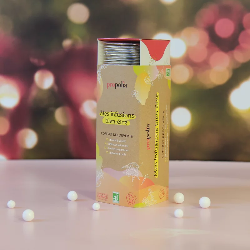 Il y a des moments dans la journée où tout ralentit, où l’on a juste envie de se poser et de se faire du bien. Avec le coffret Mes infusions bien-être de Propolia, chaque pause devient un petit rituel gourmand et naturel. Édition limitée, ce coffret propose quatre infusions bio aux épices, aux plantes et à la propolis, conçues pour répondre à différents besoins du quotidien.