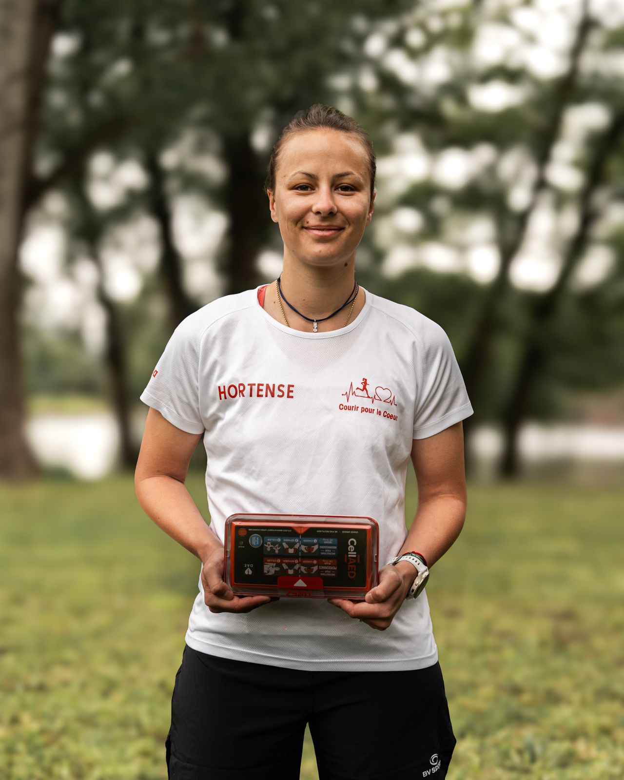 Depuis, l’aventure s’accélère. L’association organise des courses solidaires, sensibilise aux massages cardiaques et collecte des fonds. Hortense s’engage aussi dans une nouvelle étape : porter partout avec elle un défibrillateur portable, le CellAED®, développé par l’entreprise TaTonDef’, dont elle est devenue ambassadrice. « Je cours avec, je me balade avec, je l’ai toujours sur moi. Parce qu’un arrêt cardiaque peut arriver n’importe quand, à n’importe qui. » Mais Hortense regarde déjà plus loin. Marathon après marathon, elle rêve de repousser ses propres limites.