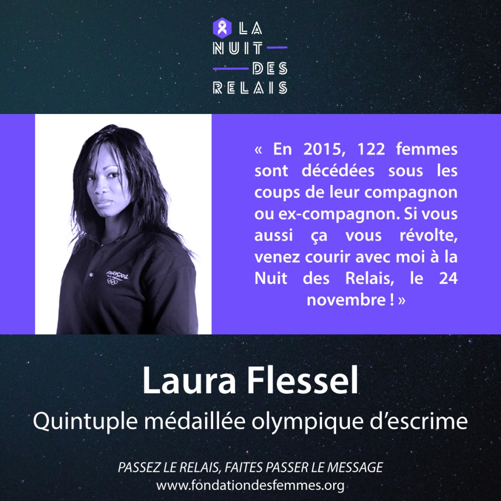 Le 24 novembre prochain à Paris, veille de la journée internationale de lutte contre les violences faites aux femmes, se tiendra la première « Nuit des Relais ». Laura Flessel, marraine de la Fondation, lancera cette première course solidaire avec 15 champion(ne)s du monde sportif et médaillé(e)s olympiques.
