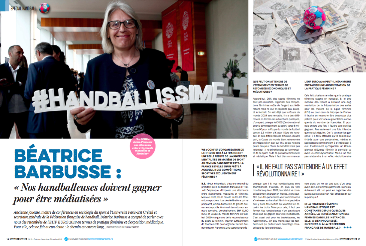 Ancienne joueuse, maître de conférences en sociologie du sport à l’Université Paris-Est Créteil et secrétaire générale de la Fédération française de handball, Béatrice Barbusse s’exprime sur les retombées de l’EHF EURO 2018 en termes de pratique féminine et d’exposition médiatique. Pour elle, cela ne fait aucun doute : le chemin est encore long…
