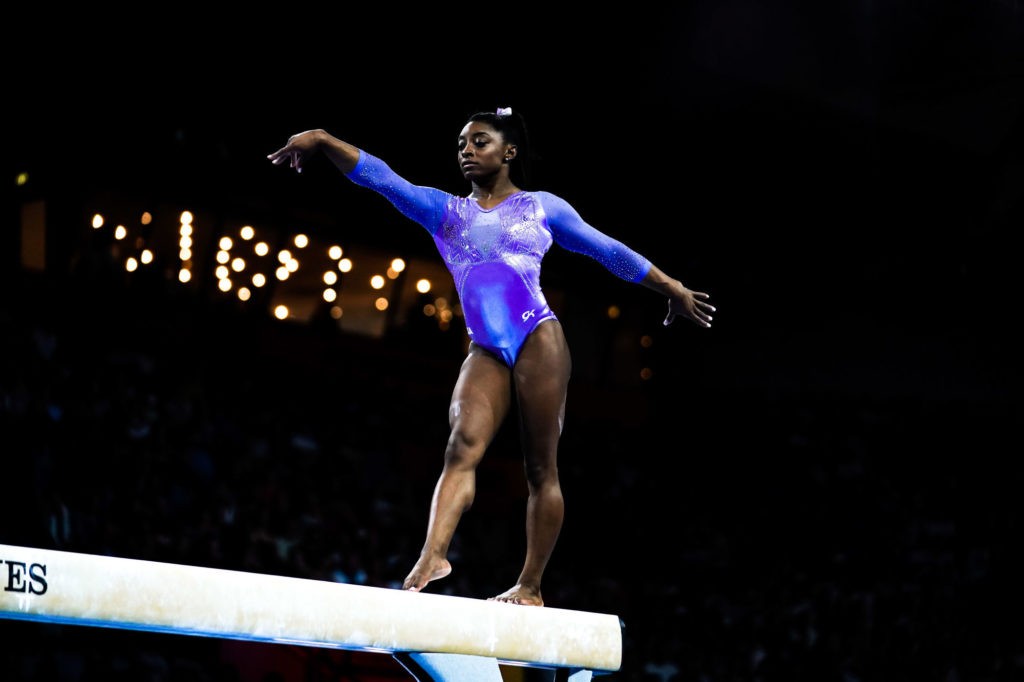 Elle a été époustouflante. Simone Biles, qui n’avait plus participé à de compétition depuis les JO de Tokyo, s’est imposée avec un total de 59,100 points au concours général.
