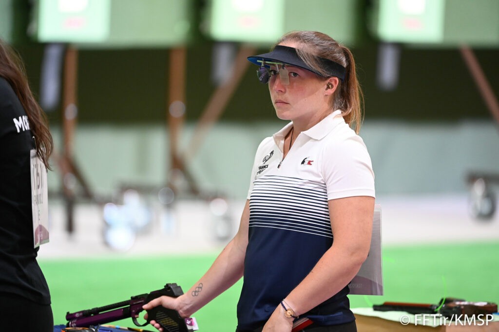 Céline : Pour moi ça a été plus compliqué. Je finissais les entraînements en pleurs. À 9 ans, je suis passée derrière à observer. Comme maman était pistolière, j’ai changé de camp, on a trouvé ça plus simple avec Sandrine.