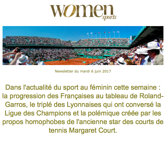 Découvrez la newsletter Women Sports du mardi 6 juin 2017.