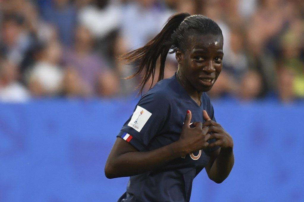 France's forward Viviane Asseyi reacts during the France 2019 Women's World Cup Group A football match between Nigeria and France, on June 17, 2019, at the Roazhon Park stadium in Rennes, western France. (Photo by Damien MEYER / AFP)