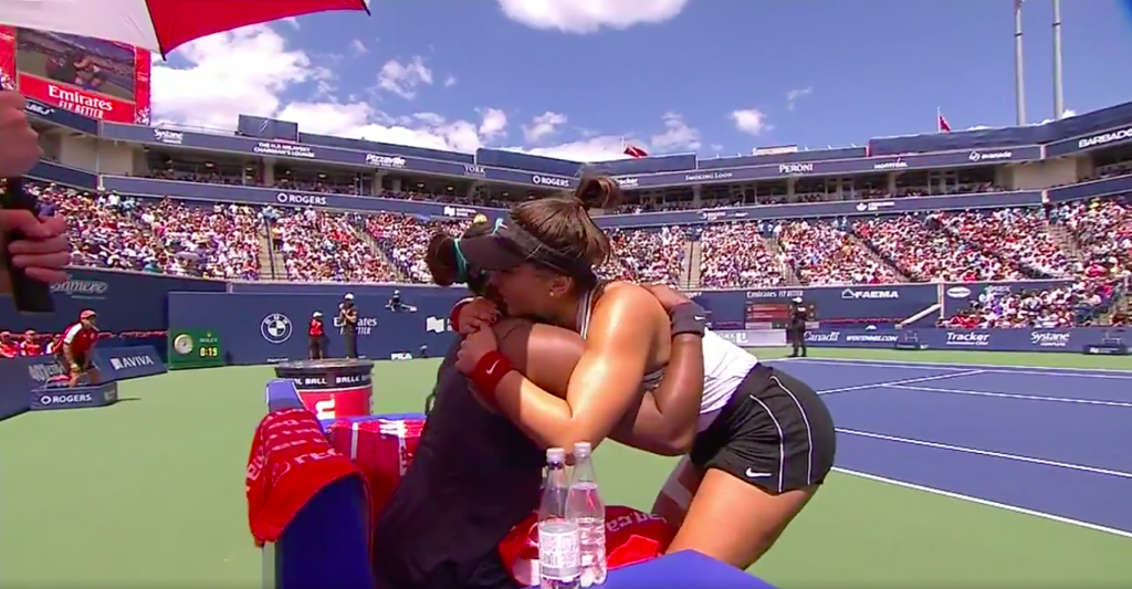 Respect, compassion, fairplay… C’est pour toutes ces valeurs qu’on aime le sport ! Et la jeune canadienne Bianca Andreescu a eu un geste certes spontané mais qui reste exemplaire lors de sa finale face à Serena Williams aux Masters 1000 de Toronto. Alors qu’elle a remporté la rencontre sur abandon de son adversaire, la joueuse de 19 ans est allée consoler l’Américaine, en pleurs sur sa chaise, en lui faisant un câlin plein de tendresse et de bienveillance…
