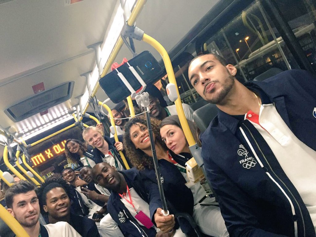 Selfie dans le bus pour les Bleus. Direction la cérémonie d'ouverture @Rio2016 ! #OpeningCeremony #espritbleu pic.twitter.com/vUSS3Rojko