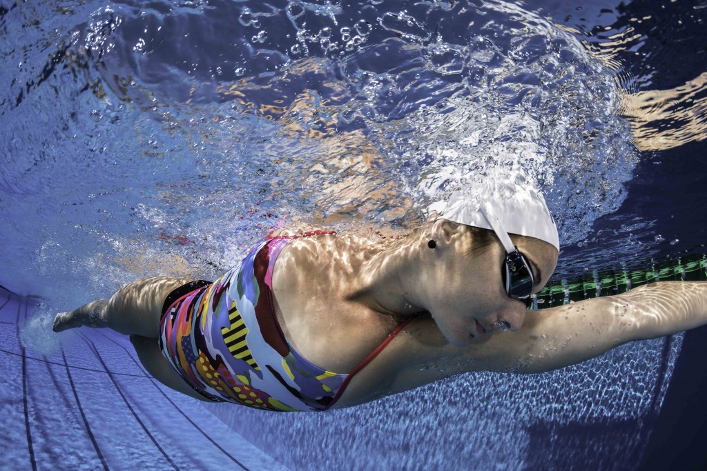 Arena propose de pimper son look de tête, avec une collection de bonnets aux inspirations amérindiennes. Coiffée de plumes des Cheyennes, la nageuse peut ainsi aligner les longueurs durant des sessions de nage prolongées avec une pénétration dans l’eau idéale, un atout davantage dû au crâne moulé garanti sans pli qu’à l’imprimé, mais quand-même !