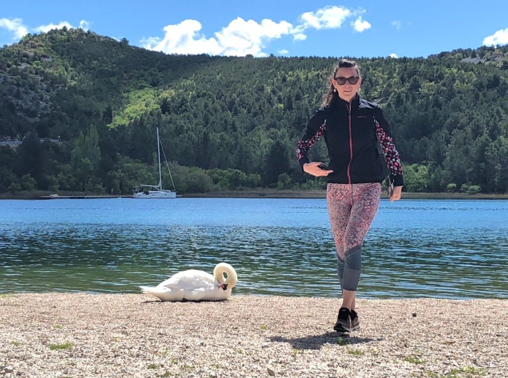En arrivant, la sortie rando se poursuit. Cet étonnant cours d’eau du karst croate (paysage façonné dans le calcaire) s’écoule dans de profonds canyons donnant lieu à des chutes impression­nantes, la cascade de Skradinski buk. Un saut au pied de la cascade pour me rafraîchir et me voilà repartie sur les hauteurs à travers les sentiers arborés. 17 cascades, 46 mètres de haut : l’aménagement du parc permet de faire le tour du spectacle.