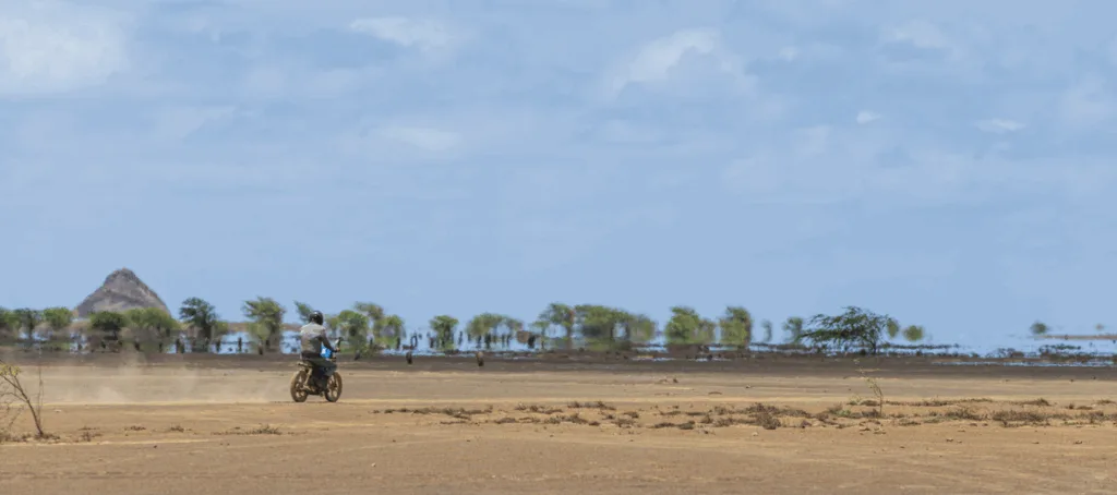 L’ACTIVITÉ : Notre objectif était de rejoindre les salines de Pedra de Lume depuis la ville d’Espargos, mais pourquoi ne pas le faire à pied, pour tenter une petite marche dans le désert, à plat, super facile ? Une fois arrivé, c’est le clou du spectacle. Vous entrez dans un ancien cratère volcanique, avant de plonger dans un lac saturé de sel. Impossible de couler, on flotte comme dans la mer Morte. Sensation étrange, peau douce garantie (après une bonne douche !), sans oublier les vertus qu’on prête à ce bain hors du temps…